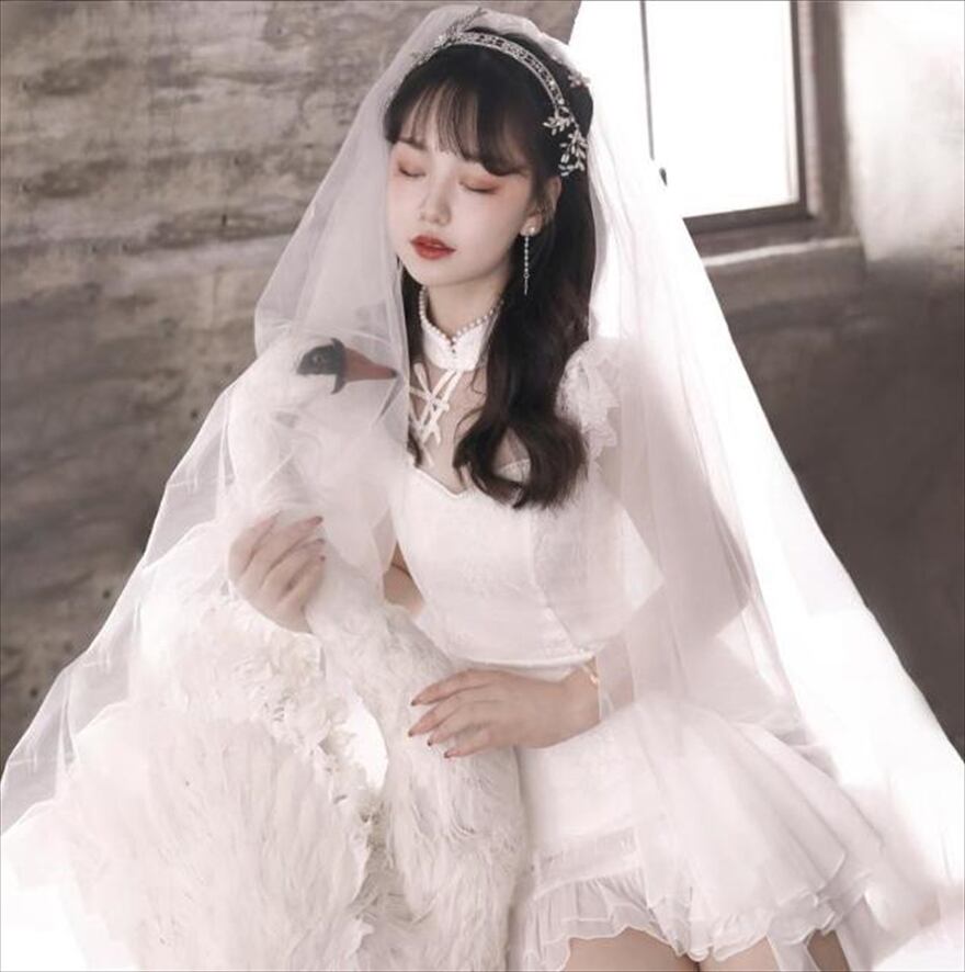 フェイクパールのチョーカーが高見えするチャイナ風ホワイトロリータドレスです。