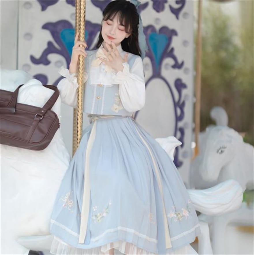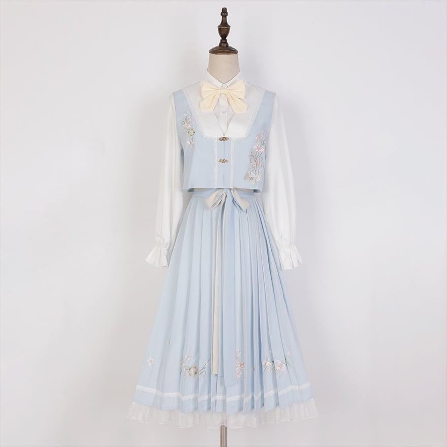 Sサイズ ブラウス 着丈58 胸囲 92 肩幅37 袖丈57 ベスト 着丈39 胸囲90 肩幅37 スカート 着丈78 ウエスト64〜70