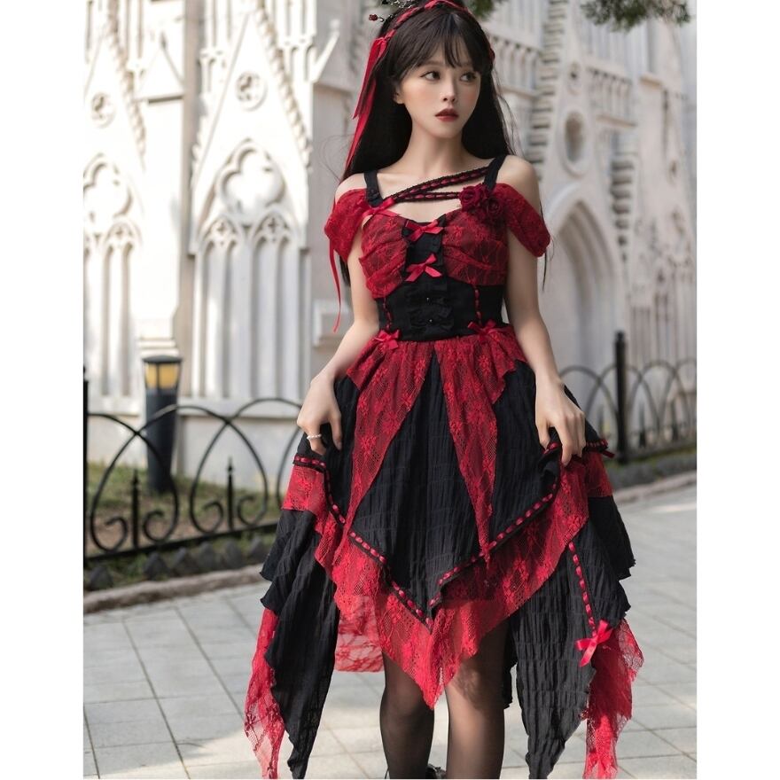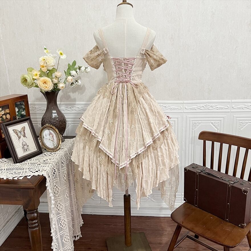 アシンメトリーなロング丈にレースレイヤードが高見えなスイートロリータドレスです