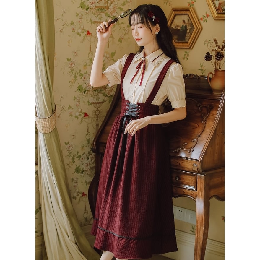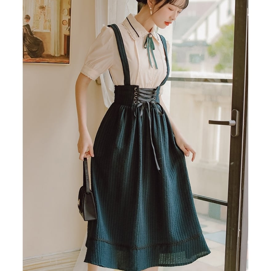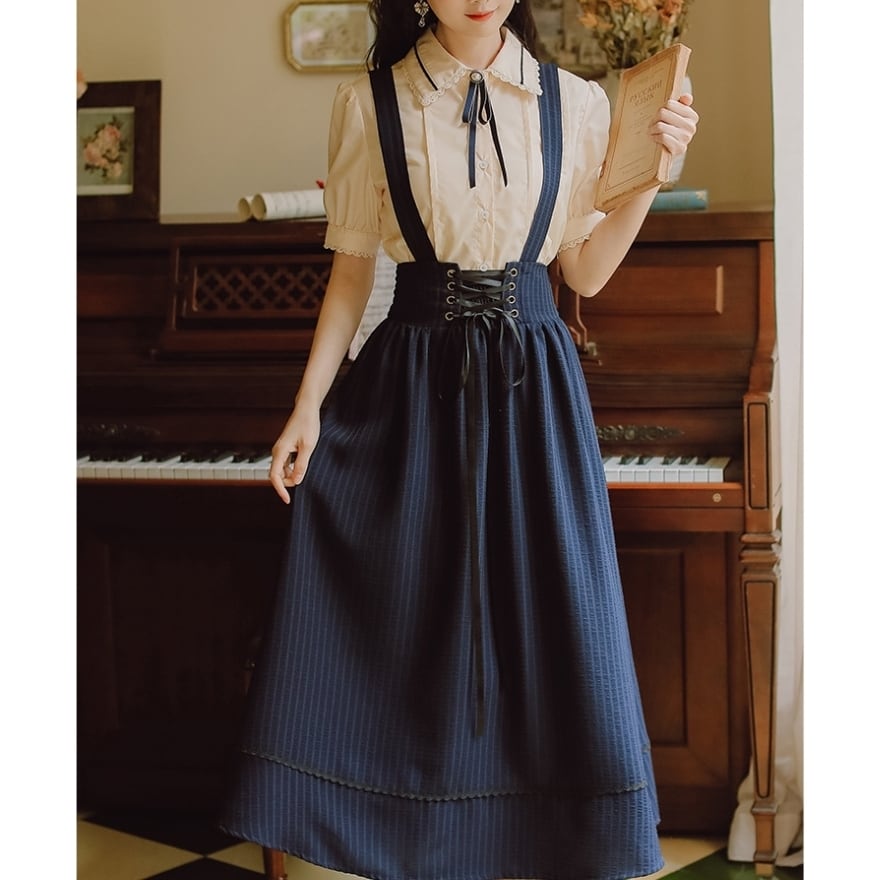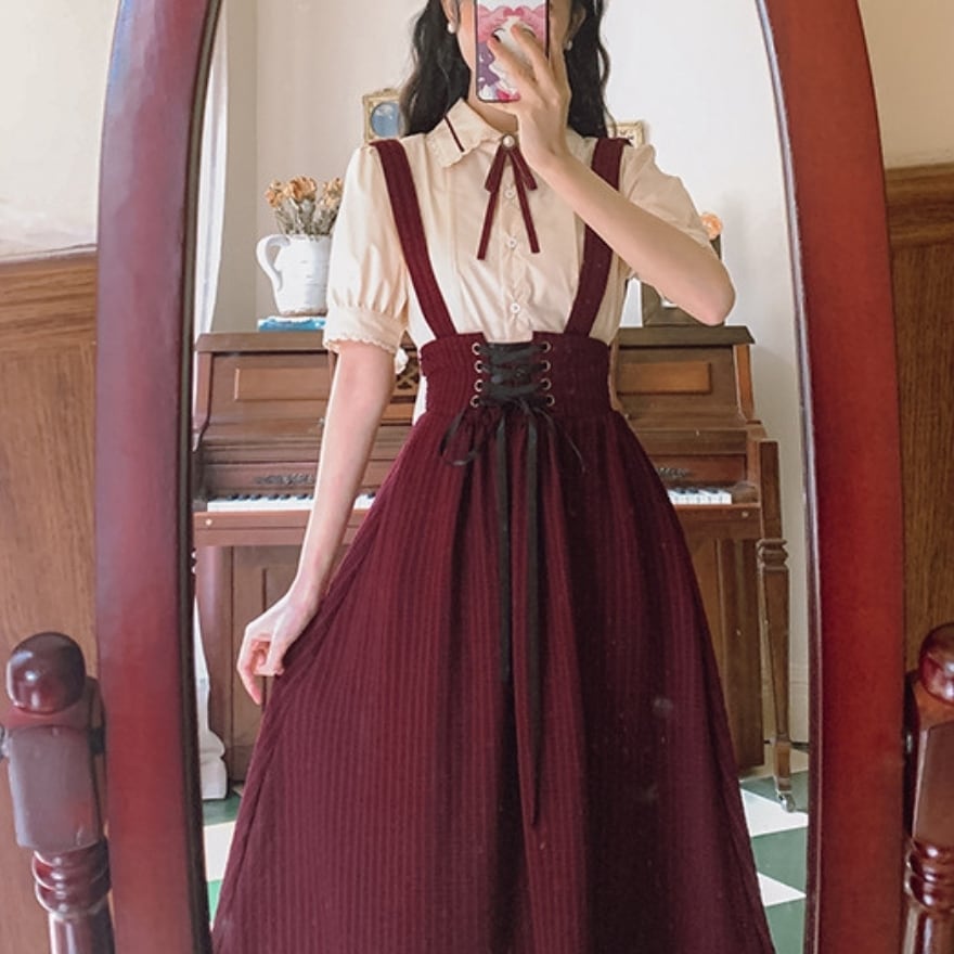 SEASONZ クラロリ セットアップ 半袖ブラウス スカート ハイウエスト レースアップ ガーリー 甘め 普段着 控えめ ろりーた 服