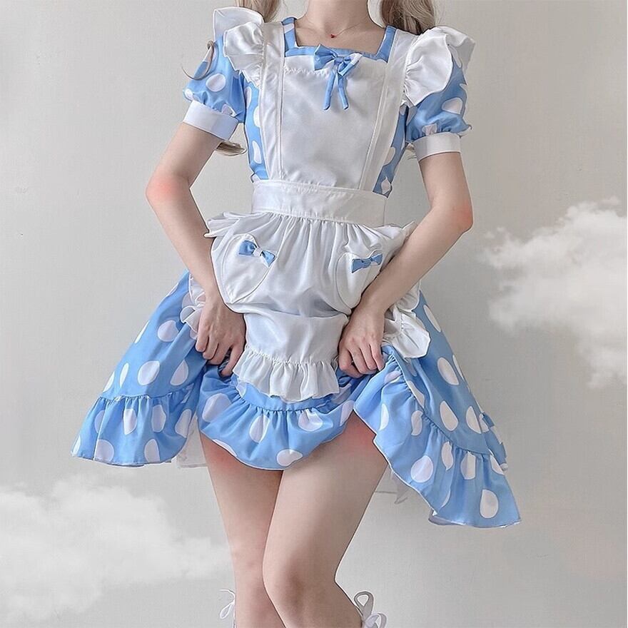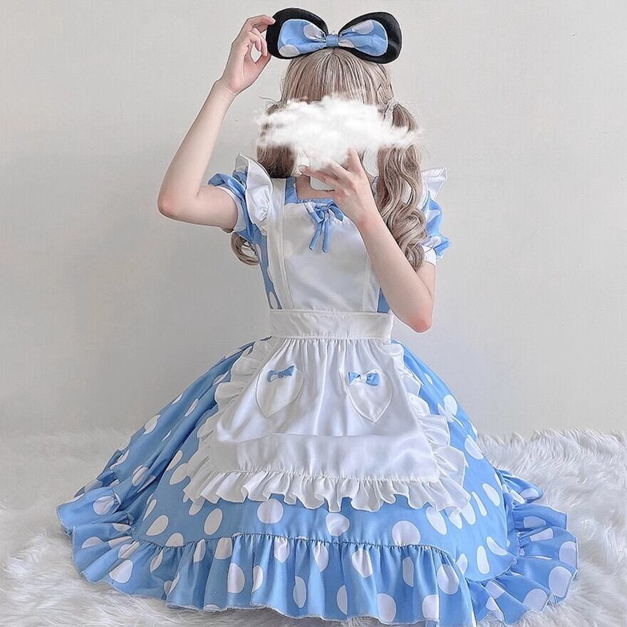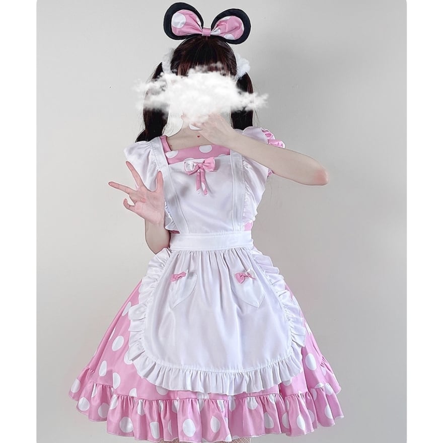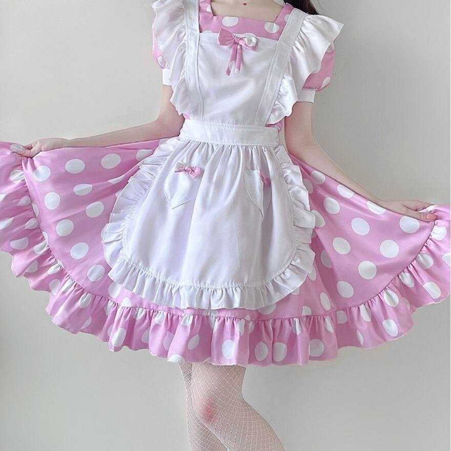 SEASONZ メイド服 コスプレ ワンピ エプロン ヘアアクセサリー 水玉 ガーリー メイドカフェ コンカフェ ろりーた 服
