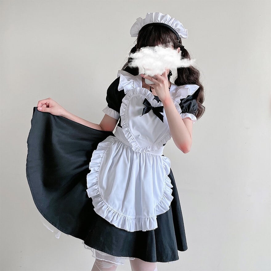 ワンピース、エプロン、ヘアアクセサリーのオールインワンのメイド服です
