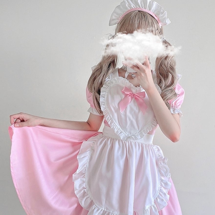 SEASONZ メイド服 コスプレ ワンピ エプロン ヘアアクセサリー 3点セット ガーリー メイドカフェ コンカフェ ろりーた 服