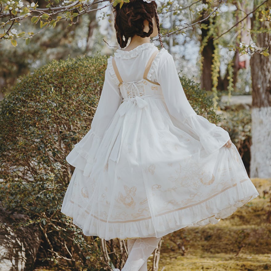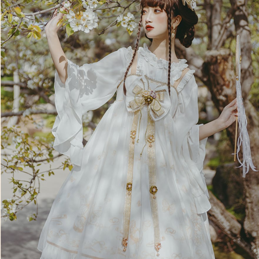 SEASONZ 華ロリ 中華ロリータ チャイナ風 JSK ジャンパースカート クラシカル ストラップ 金糸 豪華 ガーリー 甘め