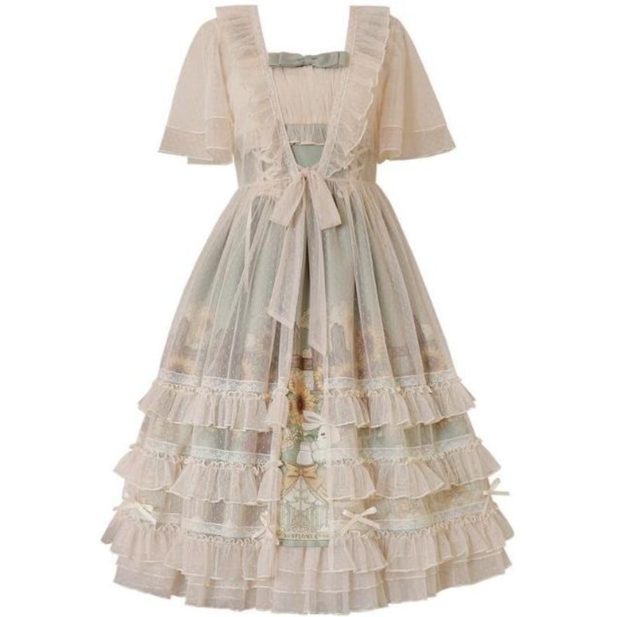 SEASONZ スイートロリータ セットアップ アウター JSK ジャンパースカート シフォン 向日葵柄 ゆめかわ