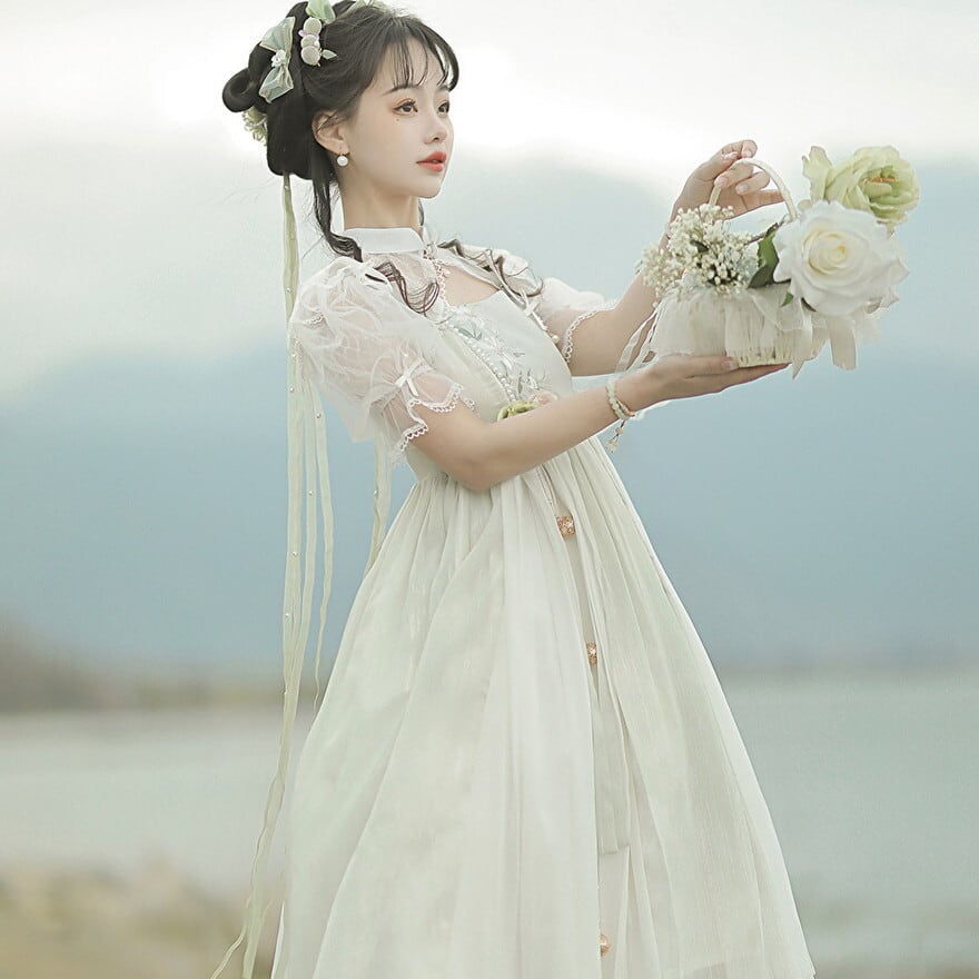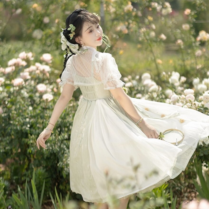 SEASONZ 華ロリ 中華ロリータ チャイナ風 セットアップ ショール JSK ジャンパースカート 刺繍 花柄 レース ガーリー 甘め