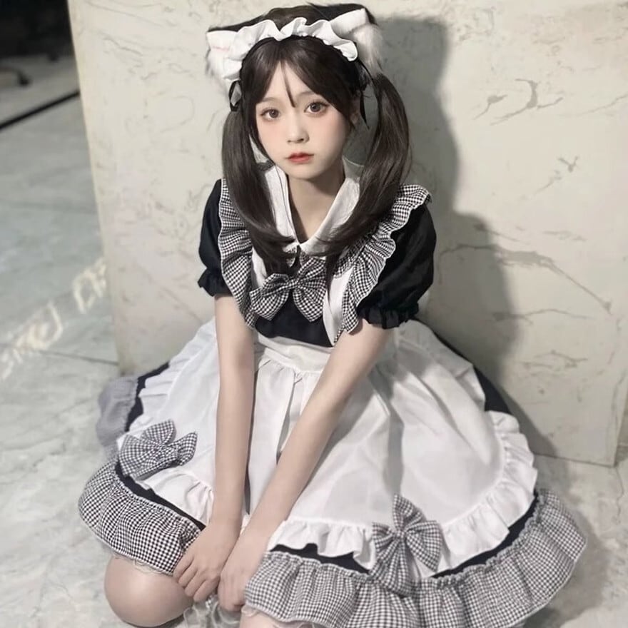 ちょっぴりレトロなチェック柄メイド服4点セットです。