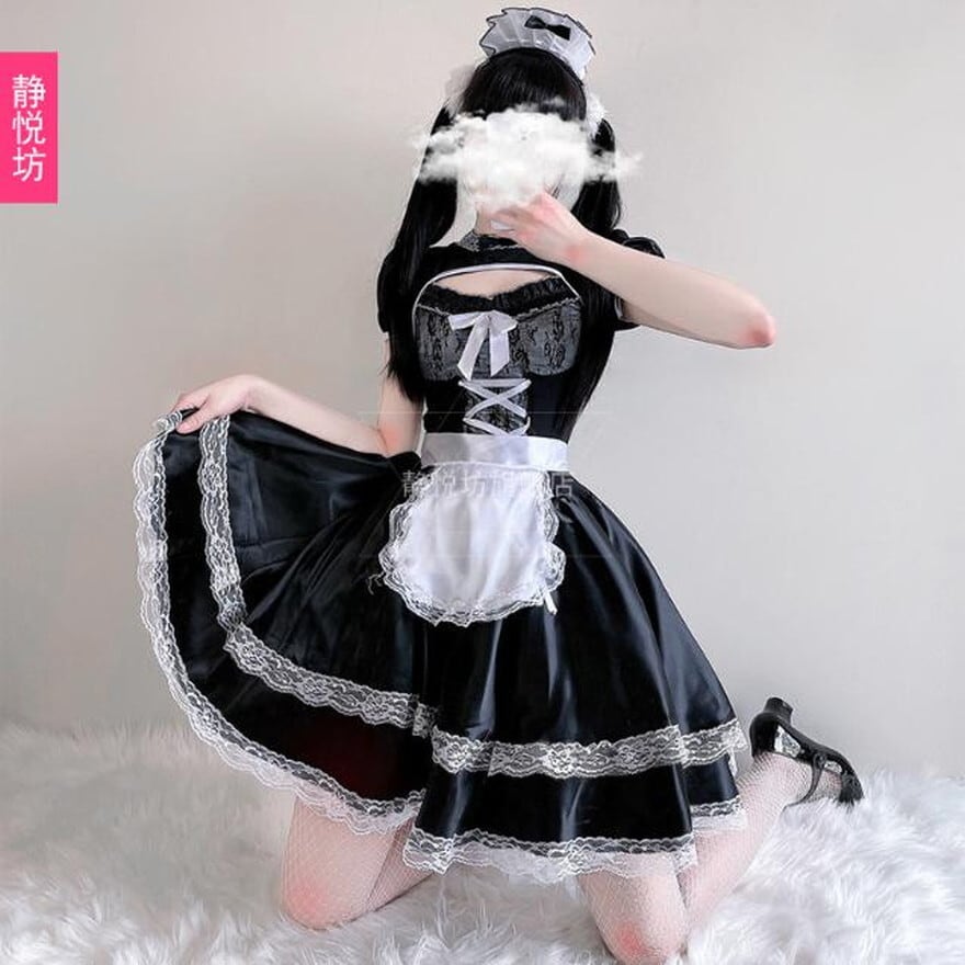 SEASONZ 静悦坊 メイド服 かわいい コスプレ 3点セット コスプレ ハロウィーン 文化祭 学園祭 ワンピ エプロン ヘッドアクセアリー チャイナ風 秋葉原 メイドカフェ ろりーた 服