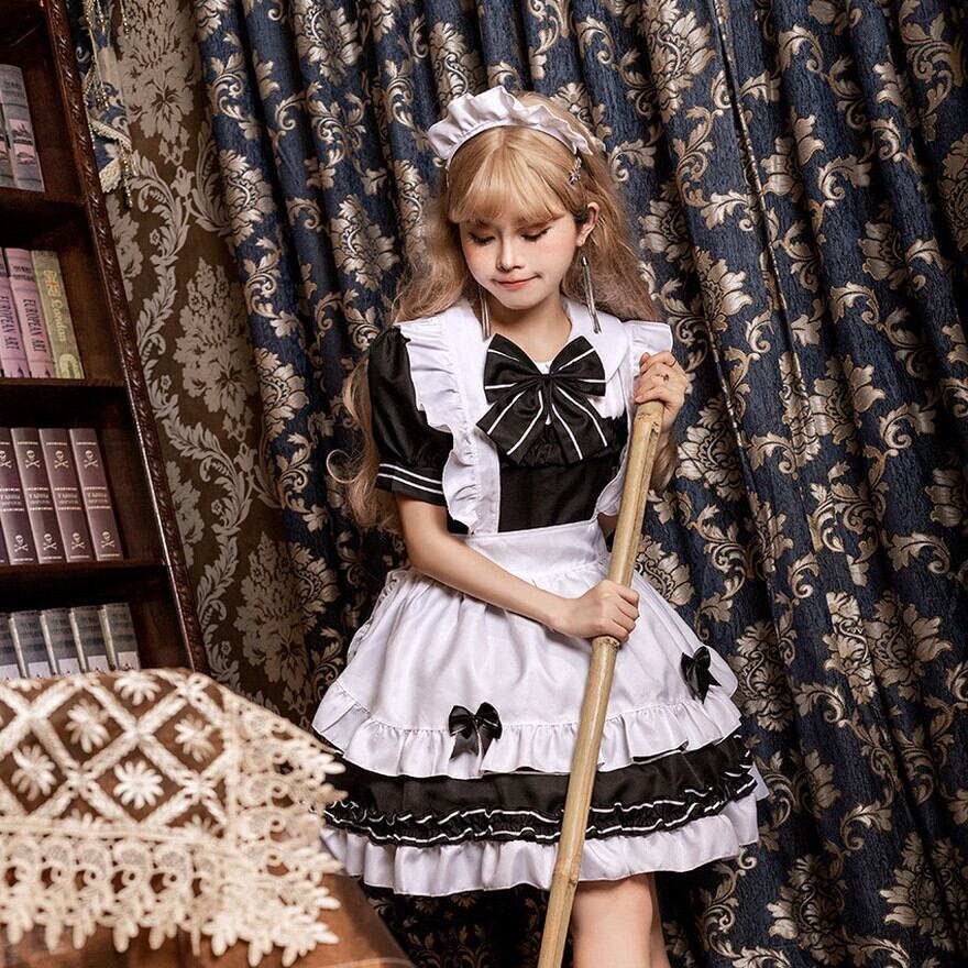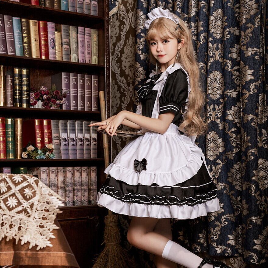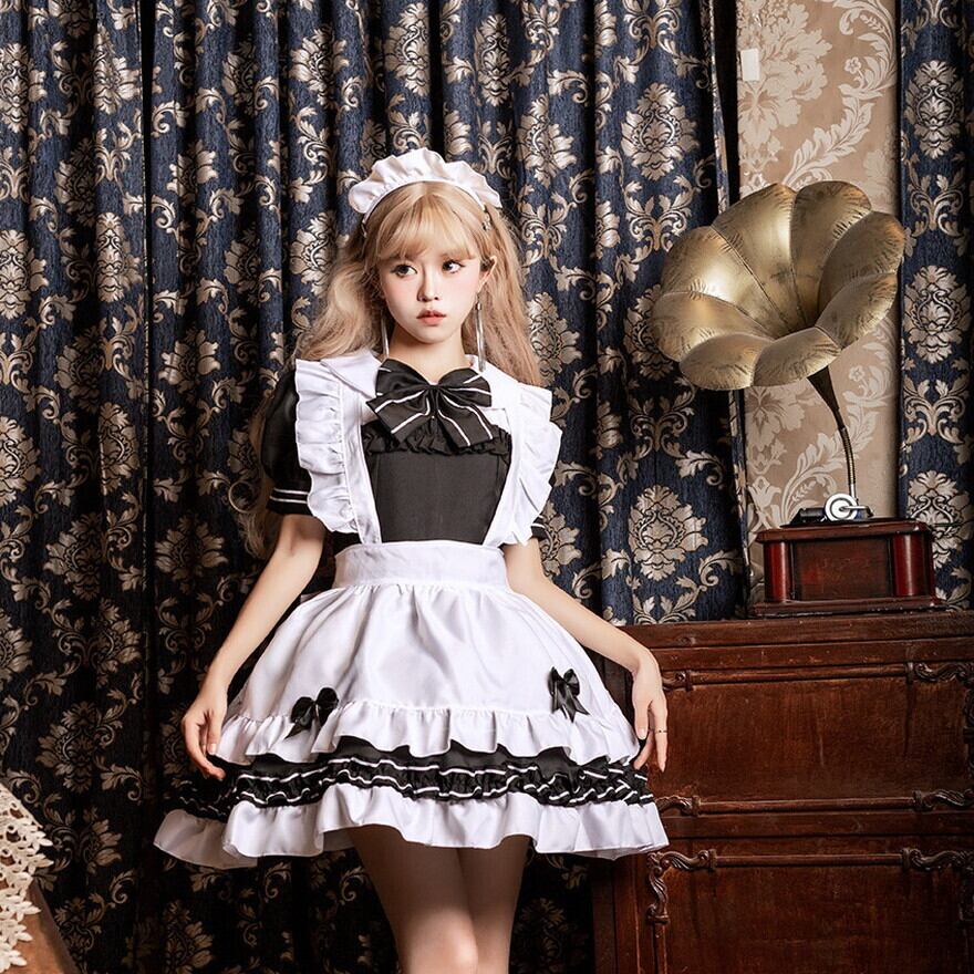 大きなリボンがかわいい人気のメイド服セットです。