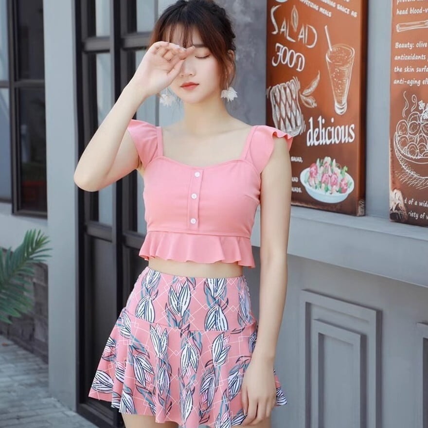 SEASONZ 可愛い 水着 セパレート フリル スカート ボタン留め ガーリー 甘め