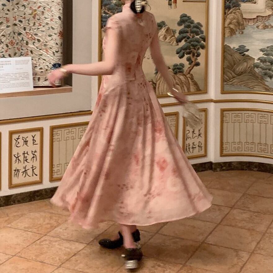 フェミニンで可愛らしいデザインのロング丈のチャイナドレスです。