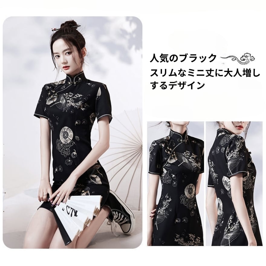SEASONZ チャイナドレス チャイナ服 スリット ミニ プリント柄 ブラック コスプレ COS イベント コンカフェ ろりーた 服