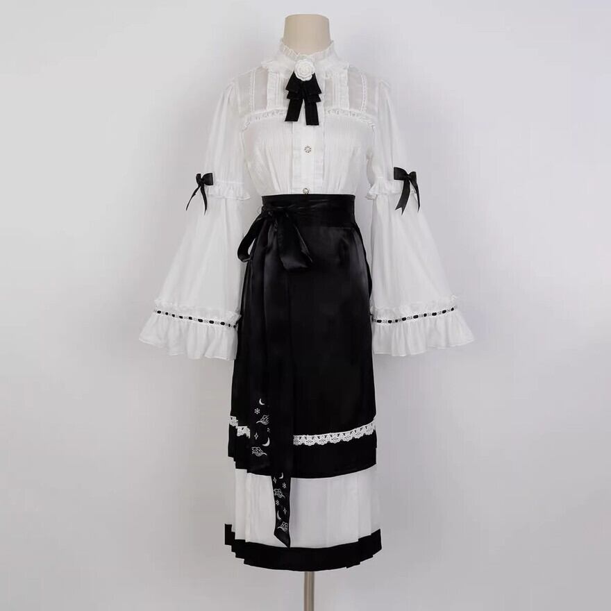 SEASONZ クラロリ 4点 フルセット ブラウス 付け袖 スカート ペチコート チャイナ風 ロング丈 プリーツ ガーリー lolita 甘め ろりーた 服