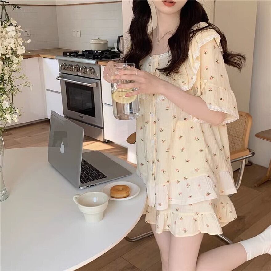花柄小紋がとってもかわいいパジャマタイプとネグリジェタイプの寝間着です