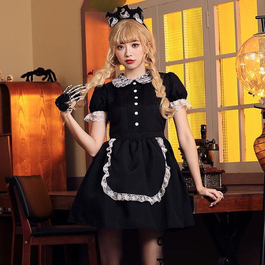 SEASONZ ハロウィン お祭り メイド服 コスプレ ワンピ 半袖 フリル ガーリー 甘め lolita 甘め 秋葉系 ろりーた 服