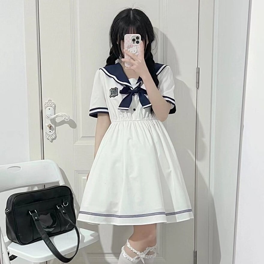 SEASONZ ロリータ ワンピース 半袖 セーラー風 フレンチスタイル 控えめ ガーリー