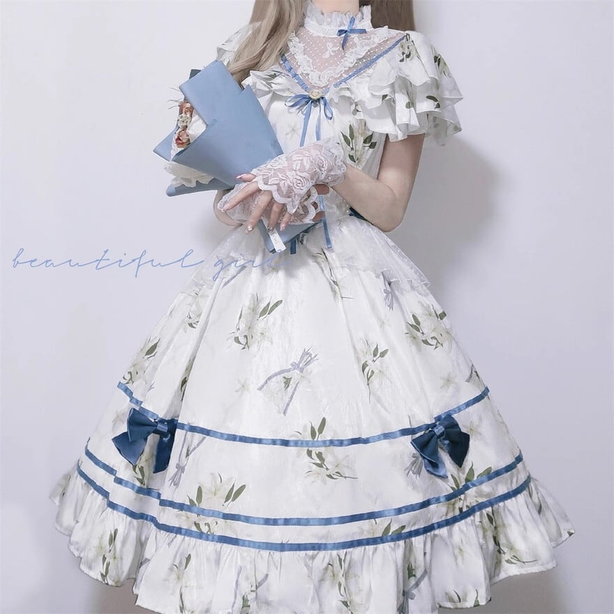 清楚で上品なスイートロリータ半袖ワンピです。