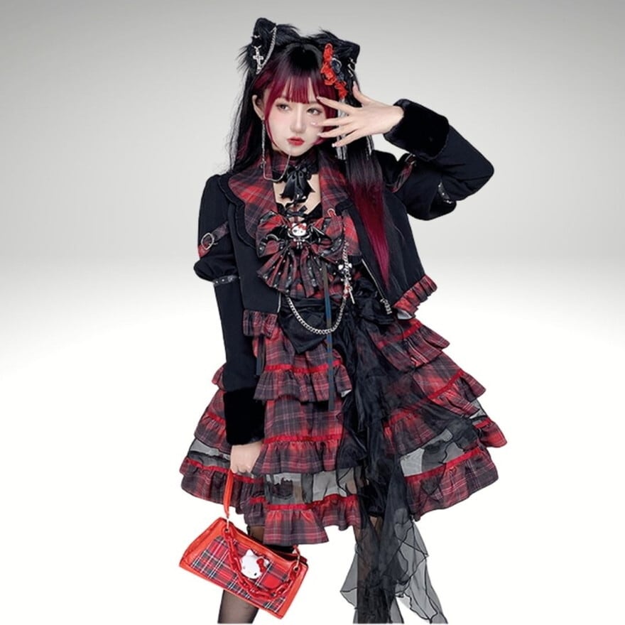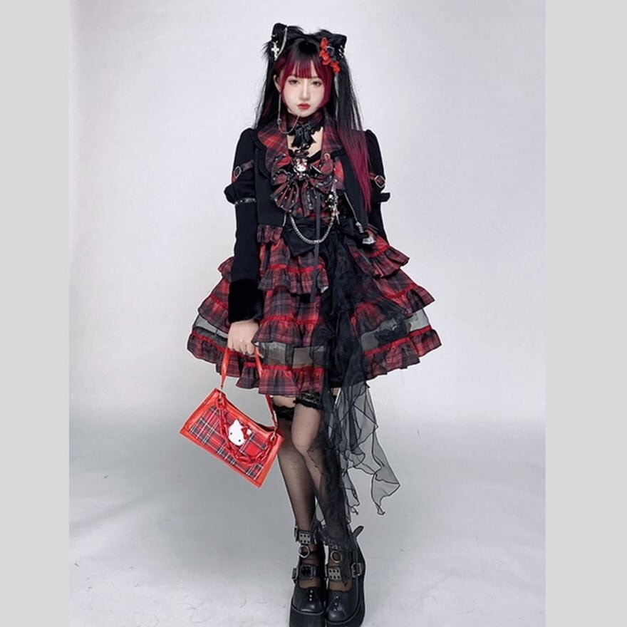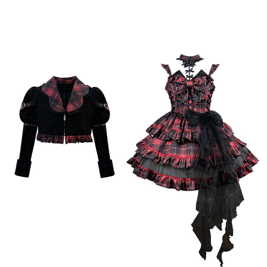 ゴスロリ JSK ジャンパースカート チェック柄 ジャケット アイドル ステージ 衣装 バンギャ 秋葉原系