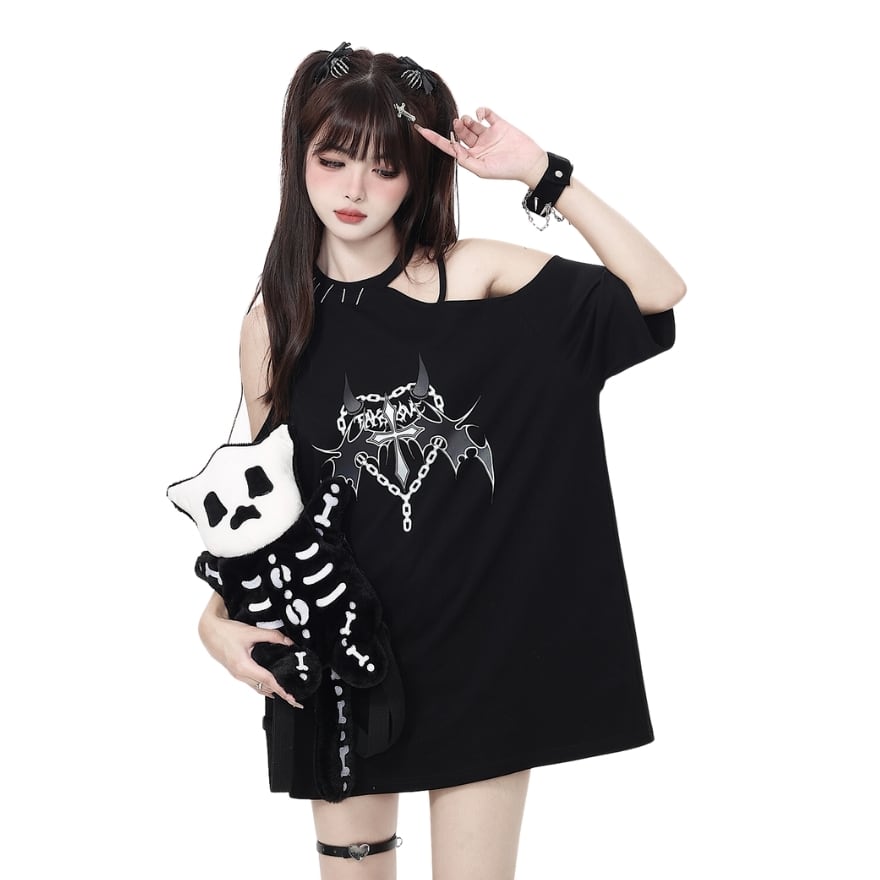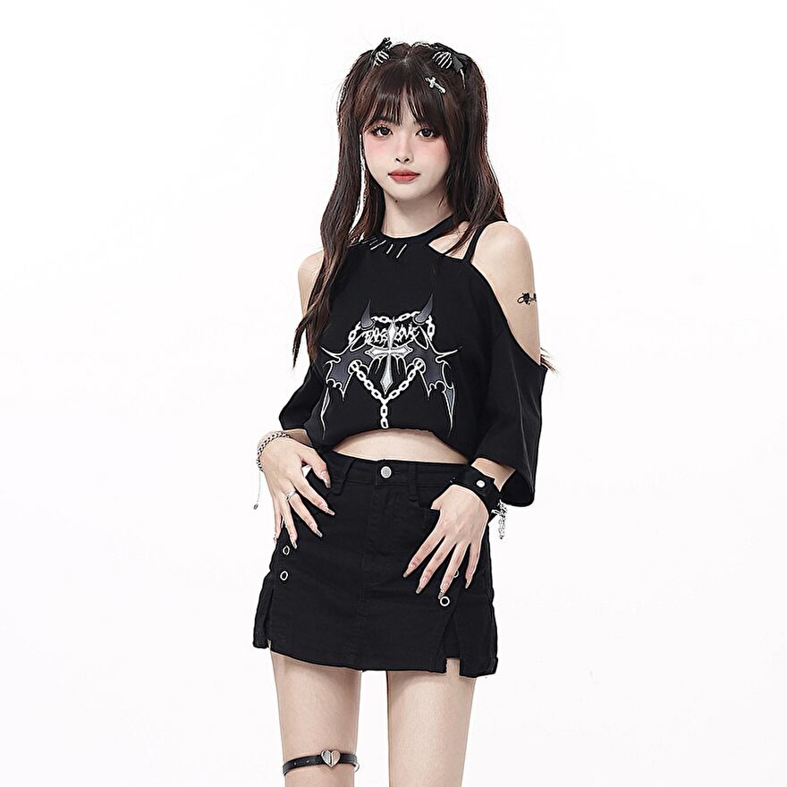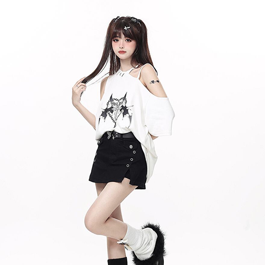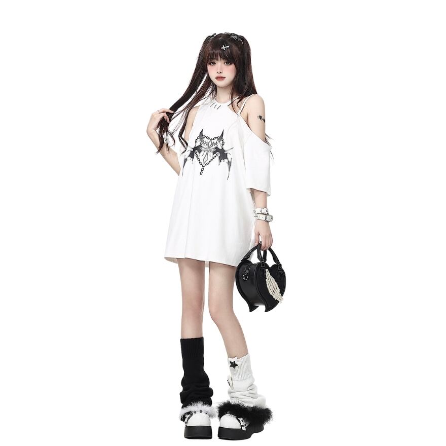 SEASONZ ソフトロリータ CRAZYGIRL オフショル Tシャツ カットソー プリント柄 ガーリー JKファッション lolita おちゃめ ろりーた 服