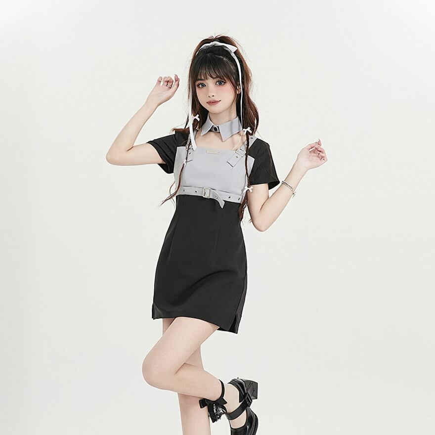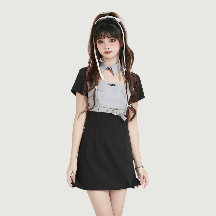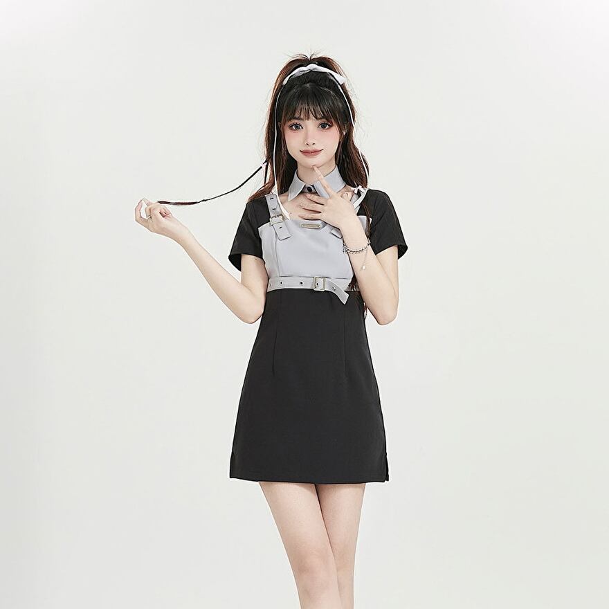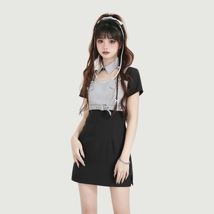 SEASONZ ソフトロリータ CRAZYGIRL ワンピース ストラップベルト 襟カラー フェイクツーピース JKファッション lolita おちゃめ ろりーた 服