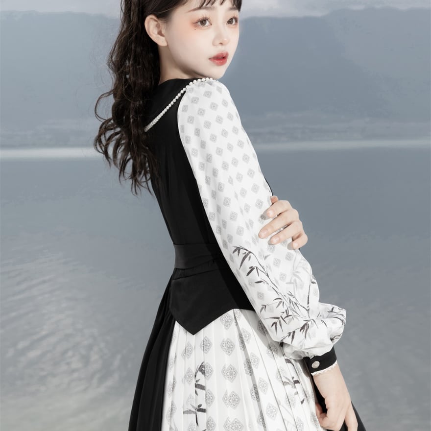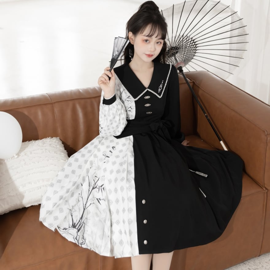 SEASONZ 華ロリ 中華ロリータ チャイナ風 ワンピ チャイナ風 バイカラー ウエストベルト ガーリー 甘め