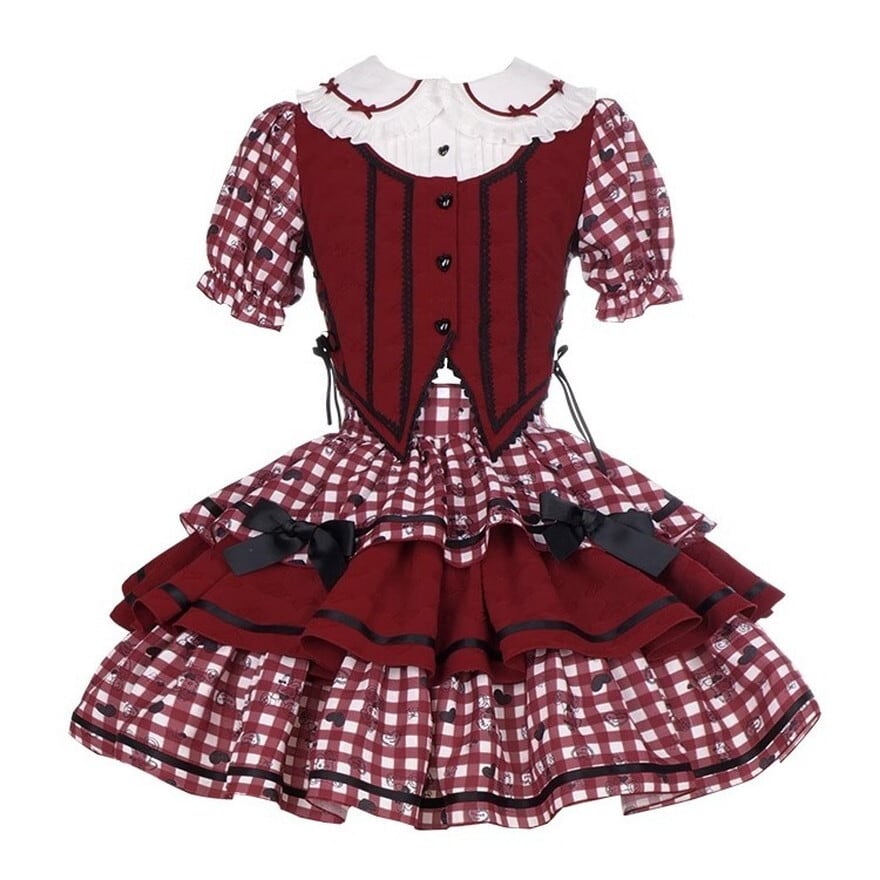 SEASONZ スイートロリータ セットアップ オルガンプリーツ アーリーアメリカン メイド服 リボン フリル チェック柄 ガーリー 甘め