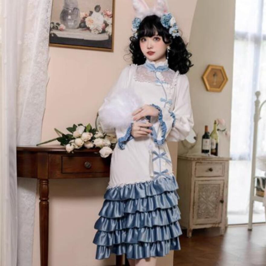 SEASONZ 華ロリ 中華ロリータ チャイナ風 チャイナ風 上下セット 少年装 JSK ジャンパースカート ブラウス レースアップ フリル ガーリー 甘め lolita 甘め ろりーた 服