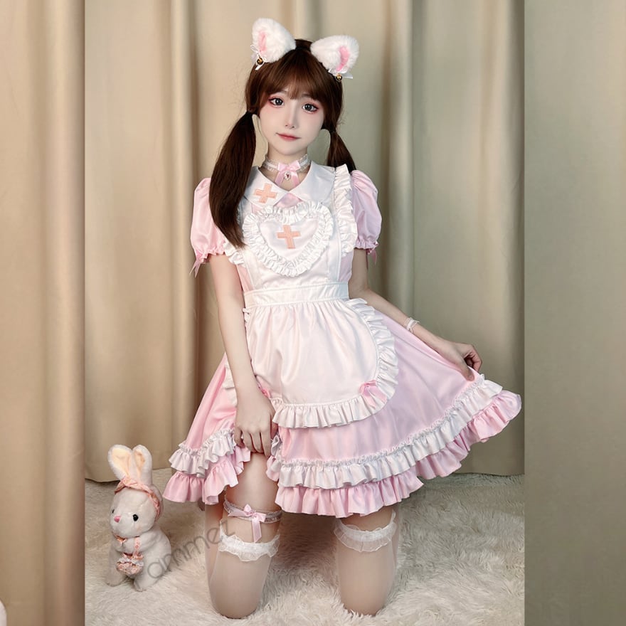 SEASONZ ロリータ メイド服 コスプレ カチューシャ付き ナース メイドカフェ コンカフェ イベント衣装 ガーリー 甘め