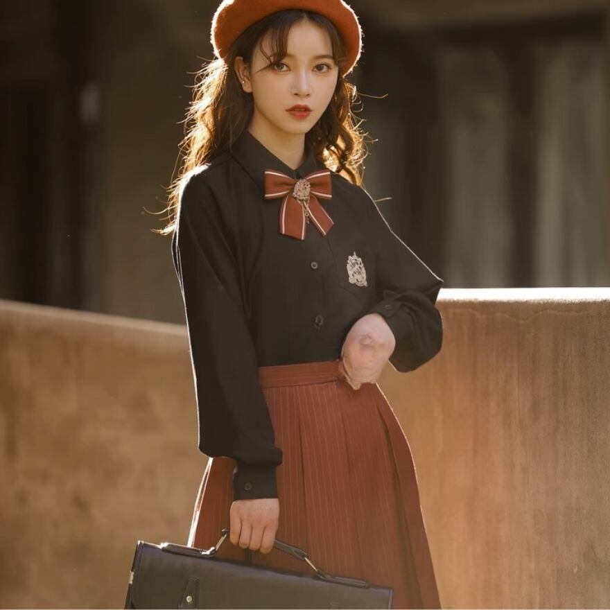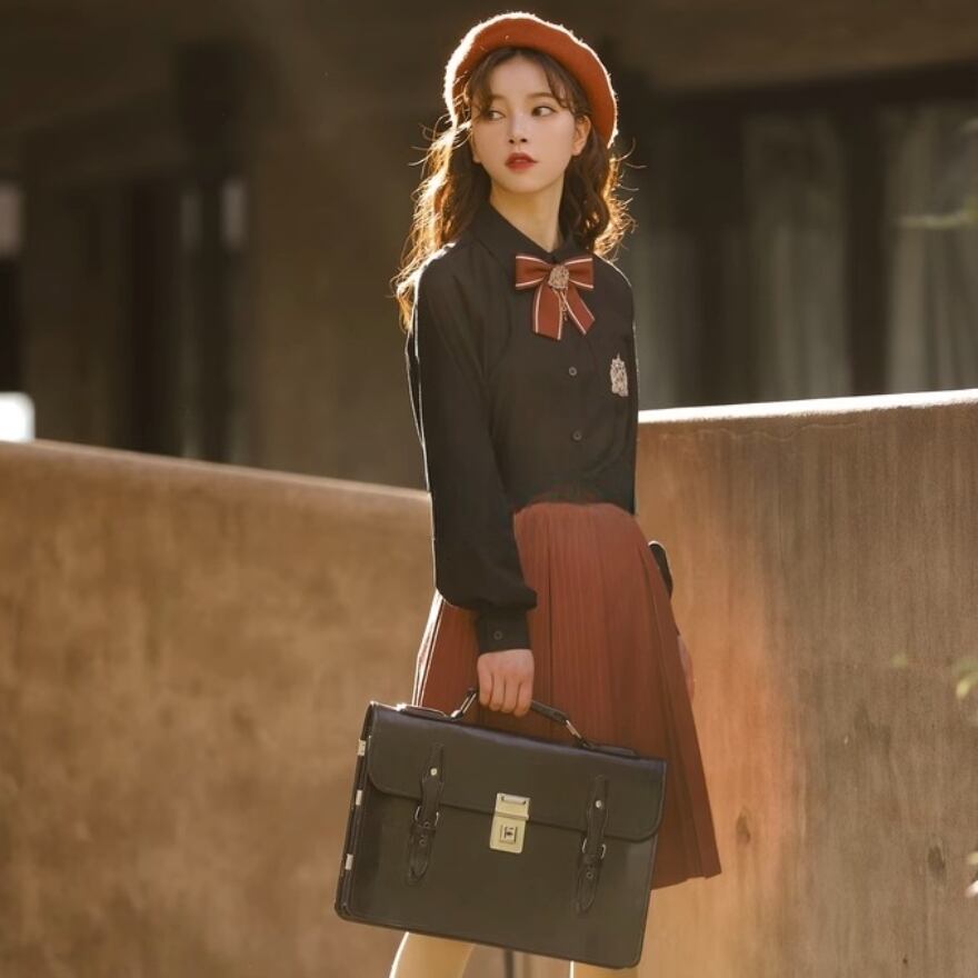 学園風少年装スタイルのミドル丈プリーツスカートです。