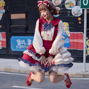 SEASONZ アイドル衣装 ジャンパースカート かわいい ふわふわ 水玉リボン ステージ衣装 学園祭 コスプレ コンカフェ 舞台衣装 イベント衣装 ガーリー 甘め lolita