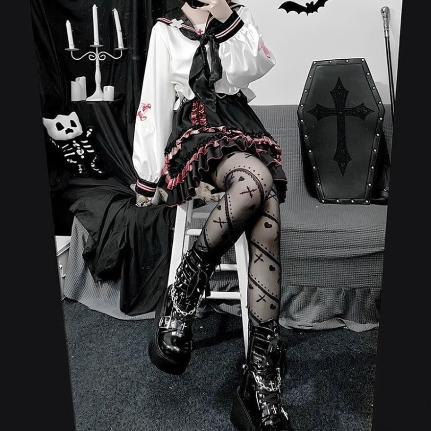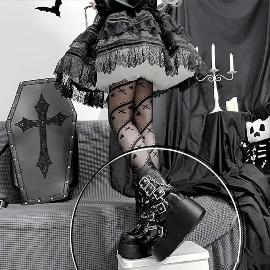 足元のおしゃれを格上げしてくれるダークなゴスロリストッキングです