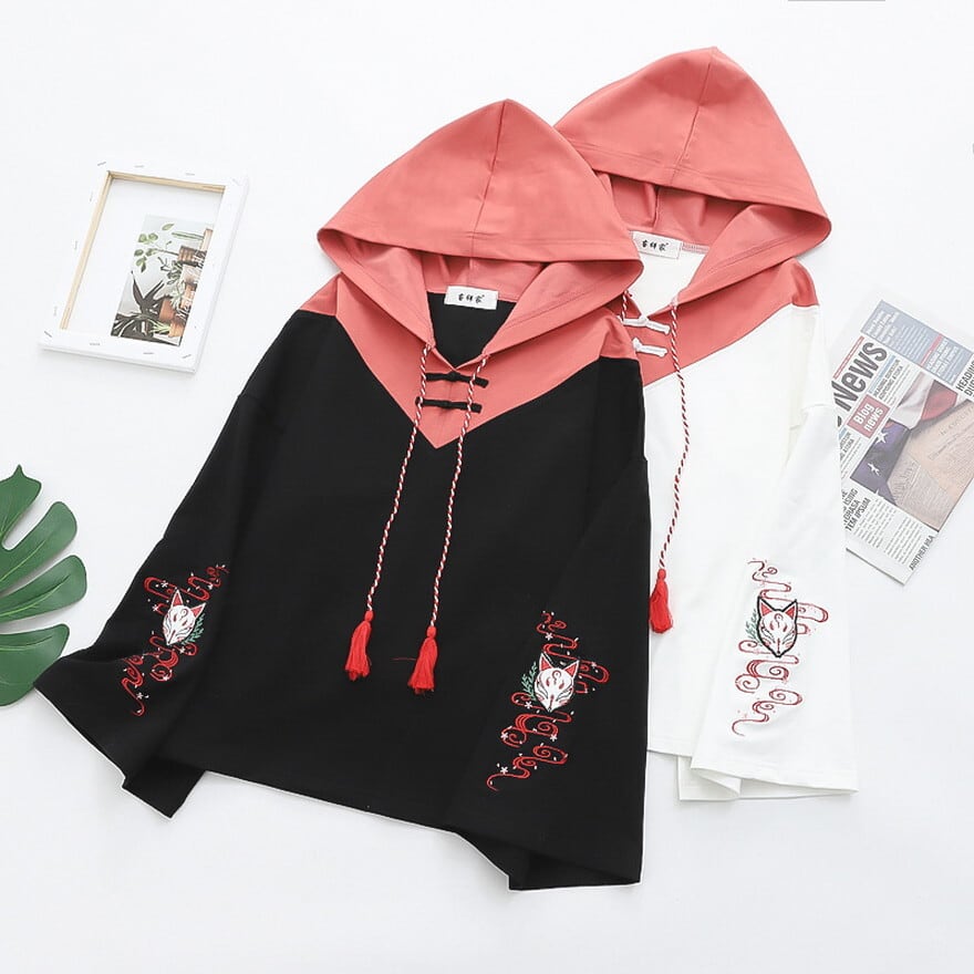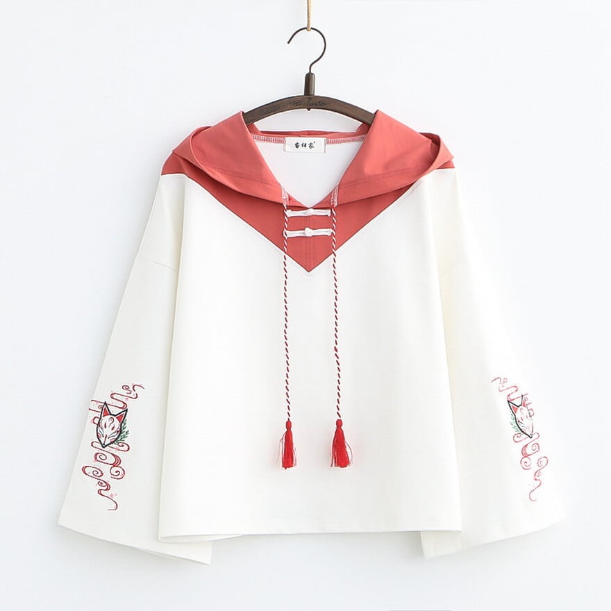 SEASONZ ソフトロリータ パーカー チャイナ風 キツネ面 刺繍 タッセル JK かわいい 甘め