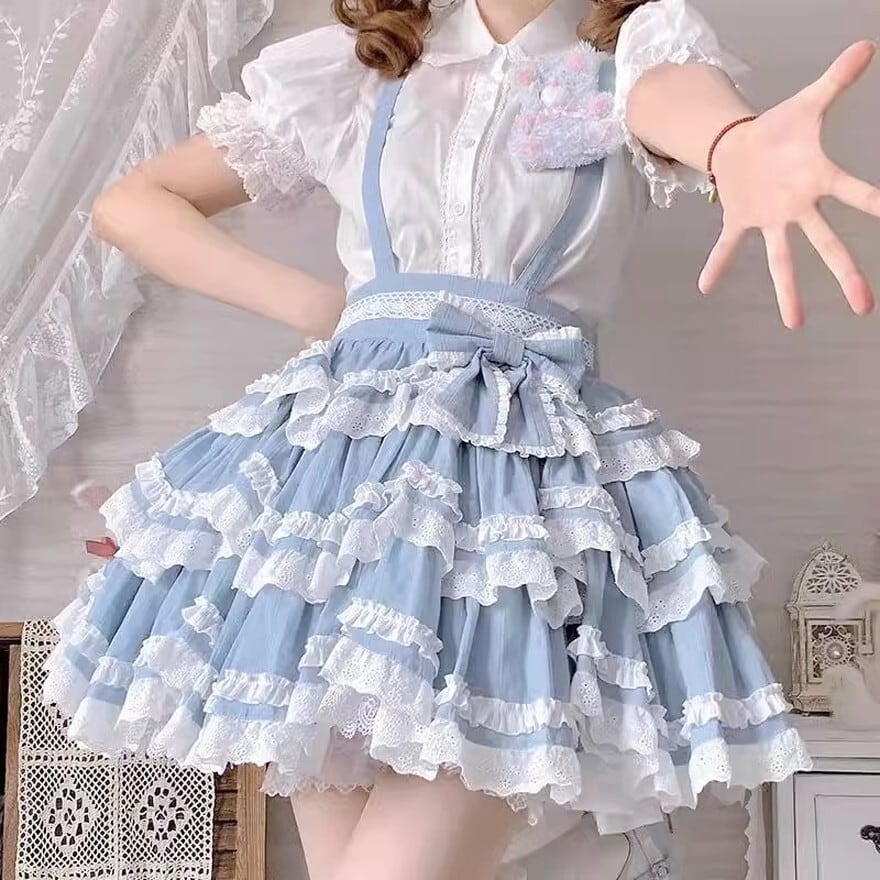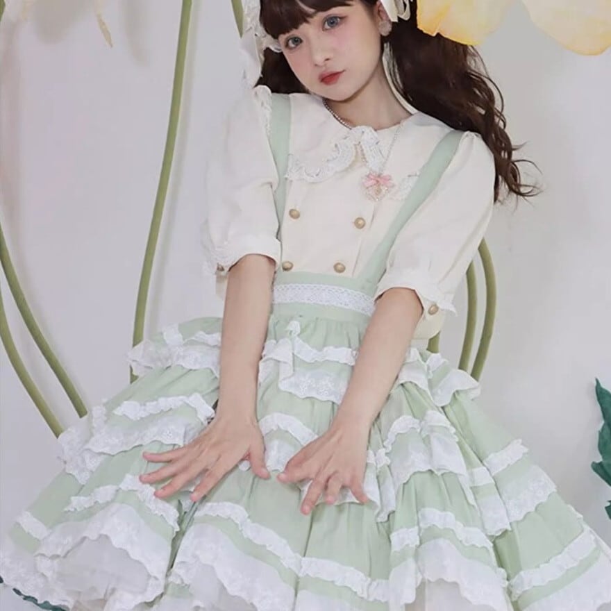 SEASONZ ソフトロリータ サスペンダースカート 取り外し可能 フリル ケーキスカート かわいい ガーリー 甘め lolita