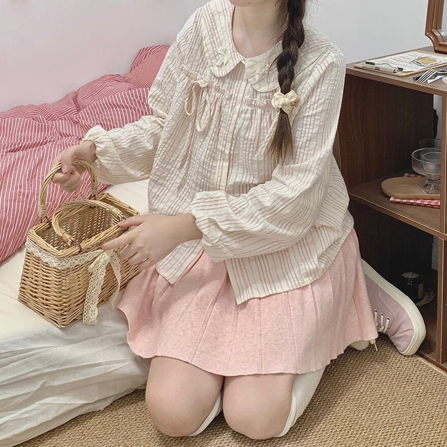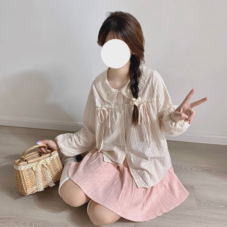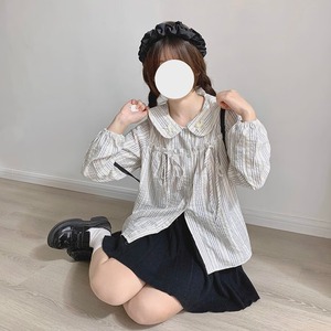 SEASONZ ソフトロリータ 長袖シャツ ストライプ柄 丸襟 フリーサイズ ガーリー 甘め lolita