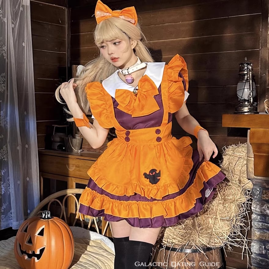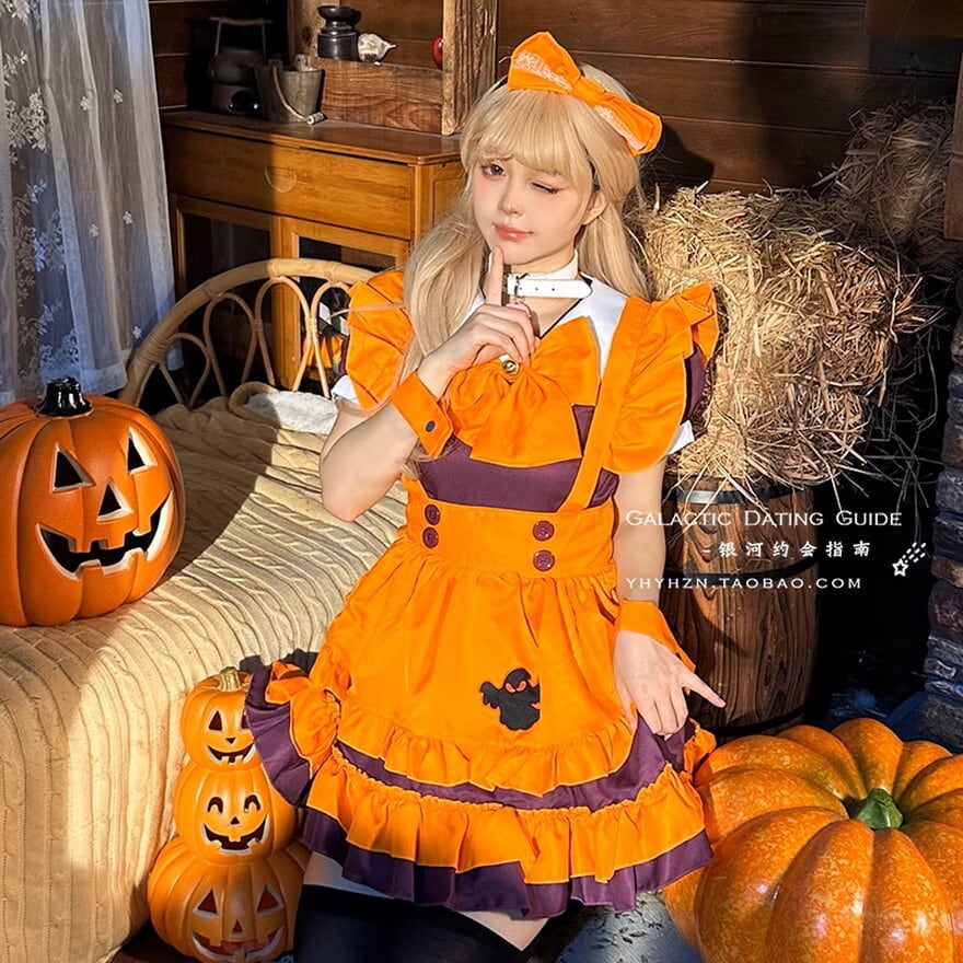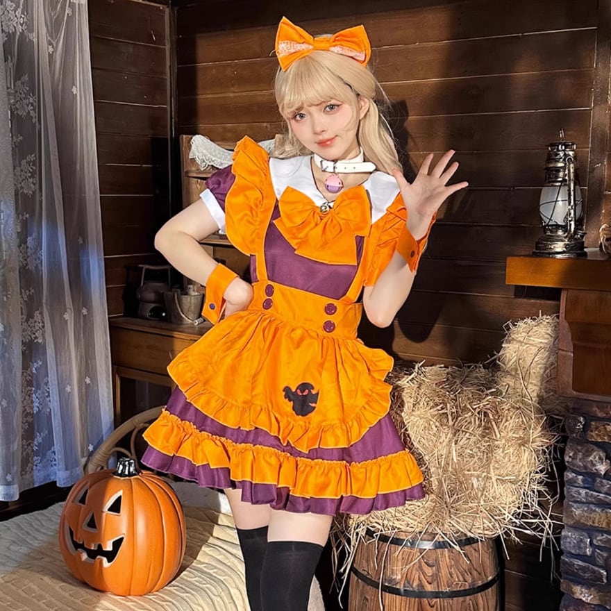 ハロウィンイベントにぴったりなパンプキンのメイド服6点セットです。