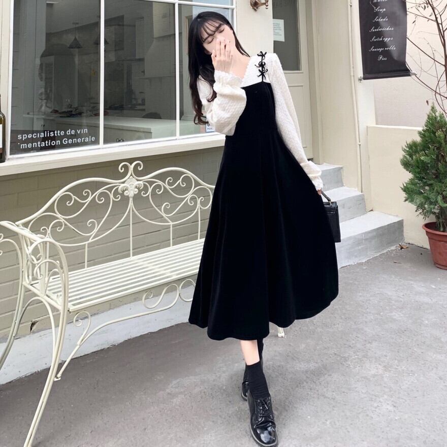 ちょっぴり大人増しなフレンチスタイルのフェイクツーピースのロングワンピです。