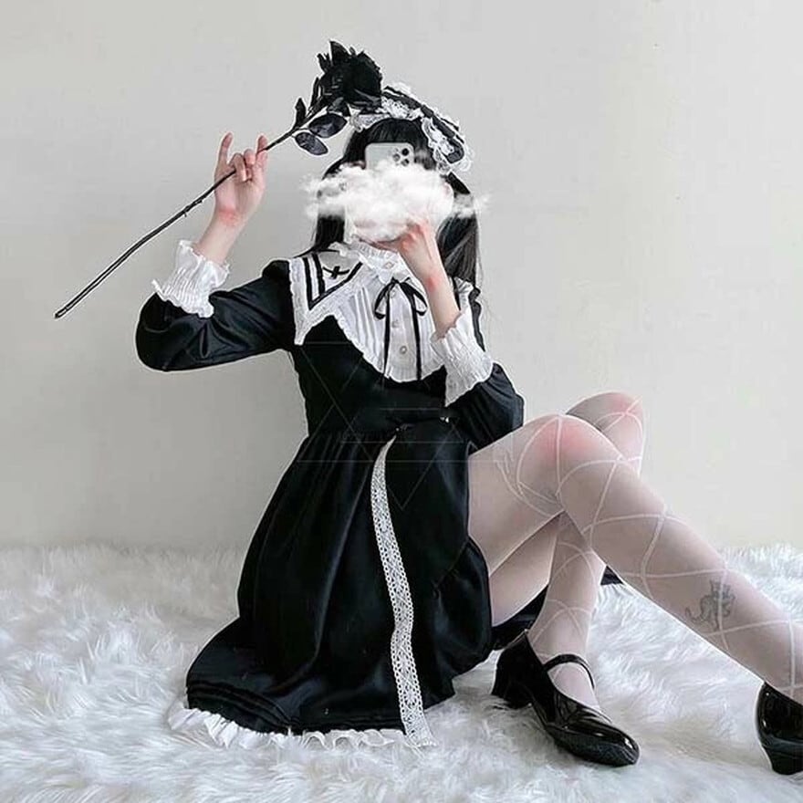 セーラー風の甘さにゴシックなクロス十字がミックスされたちょっぴり病み可愛いワンピースです。