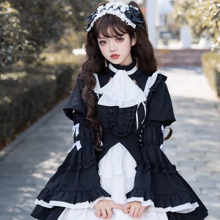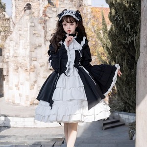 SEASONZ ゴスロリ ドレス トランペットスリーブ ケーキスカート ヘアドレス付属 付け袖 ガーリー 甘め lolita