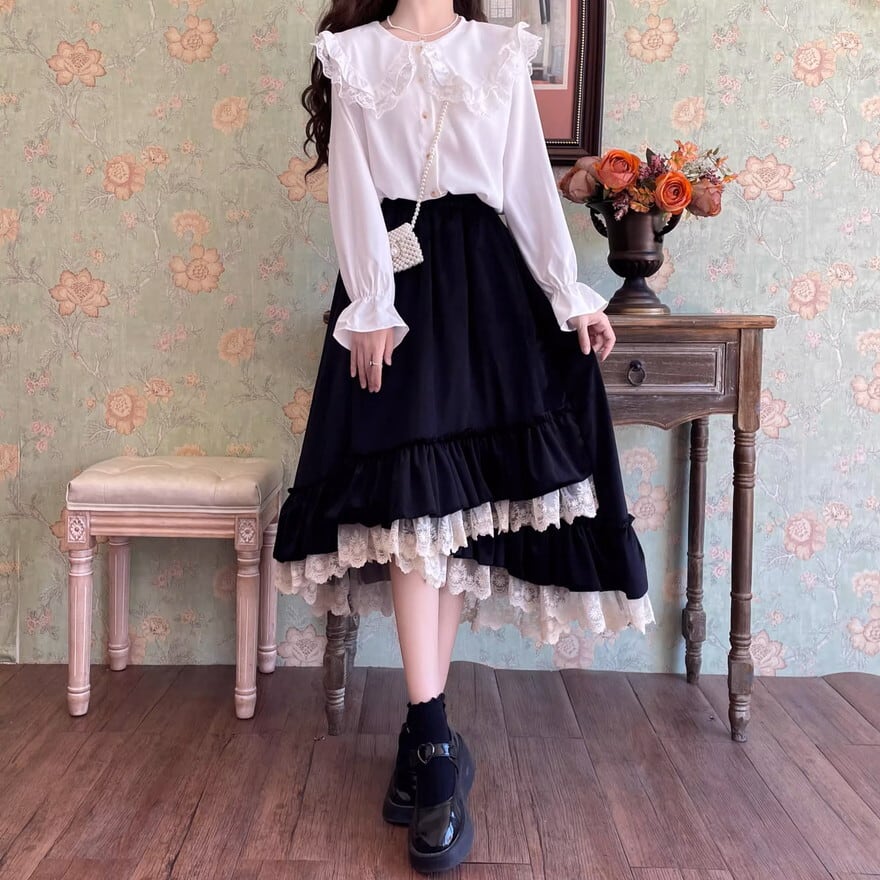 SEASONZ セミロリ ソフトロリータ アシンメトリー スカート アンブレラスカート ガーリー 甘め lolita