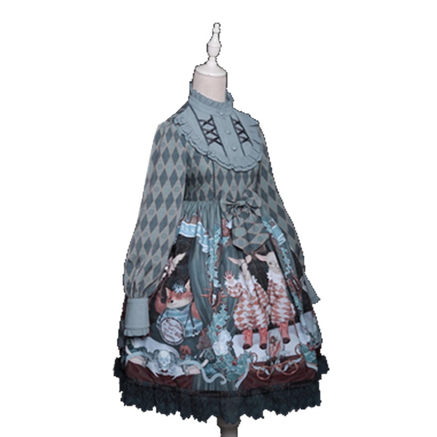 SEASONZ ゴスロリ ワンピース アーガイル柄 プリントスカート 双子コーデ Alice ガーリー 甘め lolita