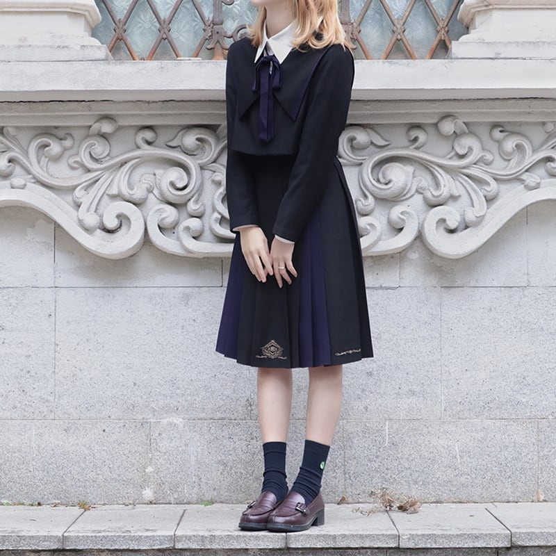 お手持ちのブラック系スカートとコーデしても病み可愛いスタイルに仕上がるショート丈ジャケットです。