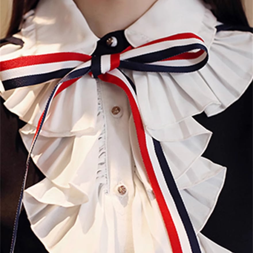 SEASONZ セミロリ ソフトロリータ 長袖シャツ リボン トリコロール ガーリー 甘め lolita
