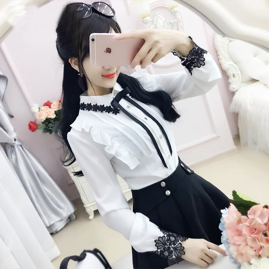 SEASONZ セミロリ 長袖シャツ レースシャツ 袖コン ガーリー 甘め lolita