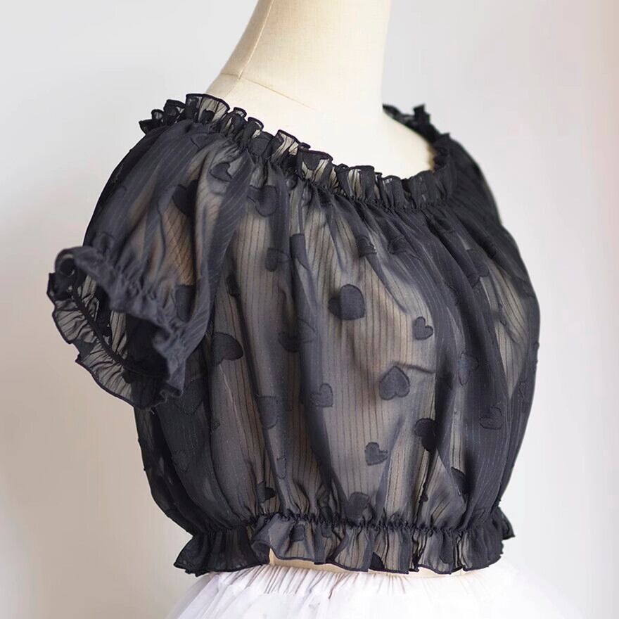 SEASONZ シフォン ラウンドネック インナー 半袖 ガーリー 甘め lolita