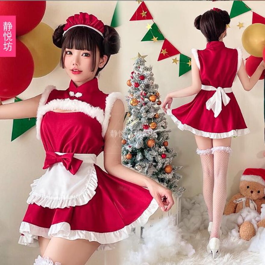 メイド服 コスプレ クリスマス サンタクロース メイド服 チャイナ風 3点セット イベント パーティ メイドカフェ コンカフェ