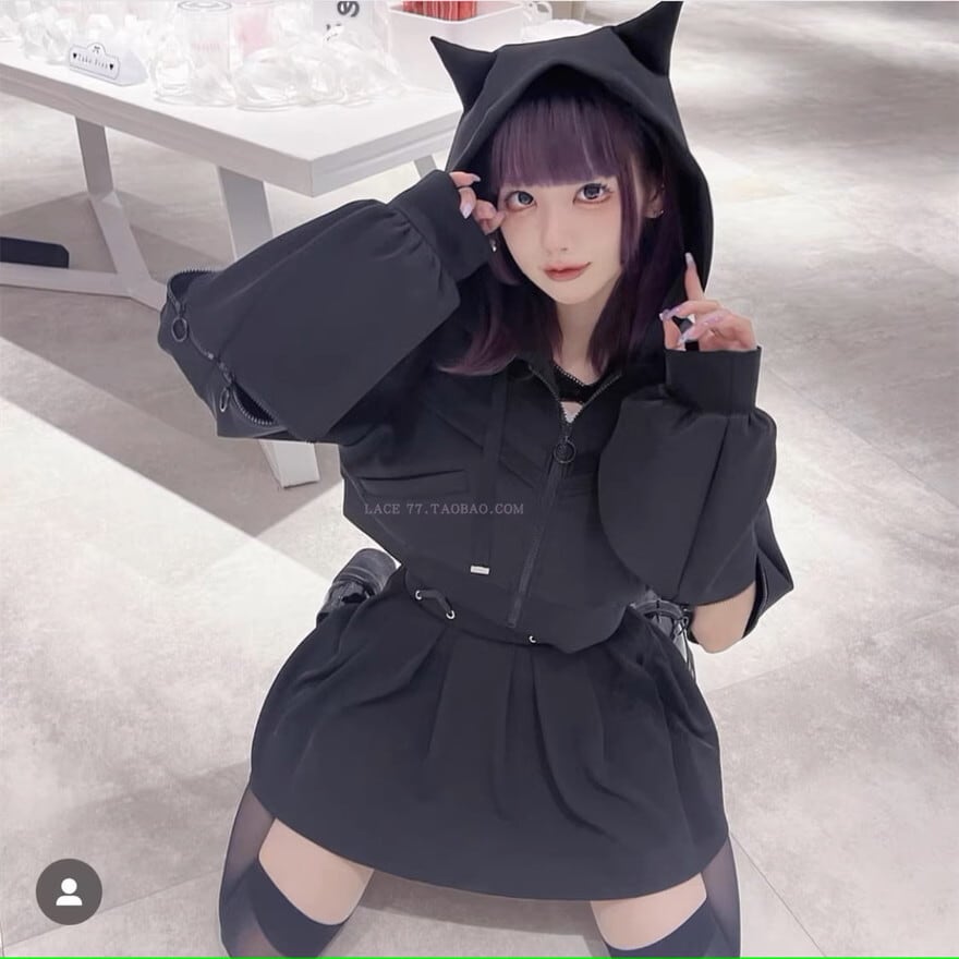 スリーブスリットにフードの角がかわいい小悪魔フーディです