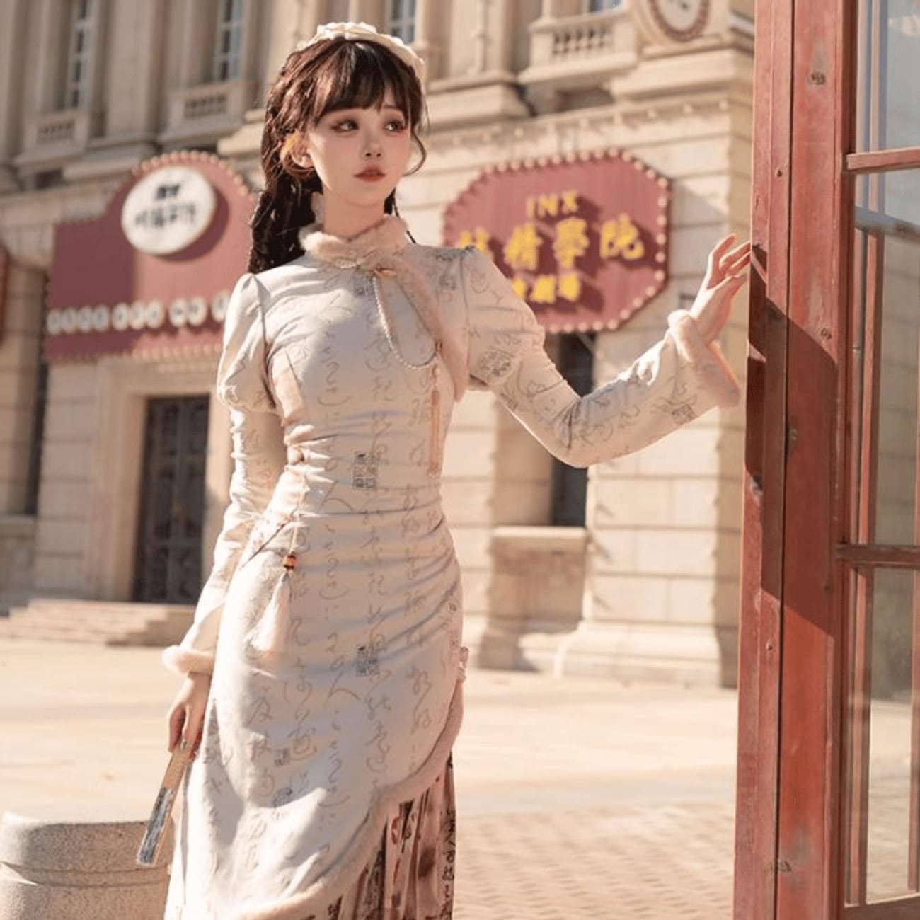 女性らしいメリハリのあるボディラインが魅力的な中華ロリータドレスです。