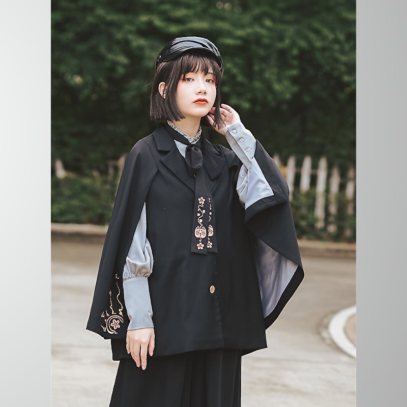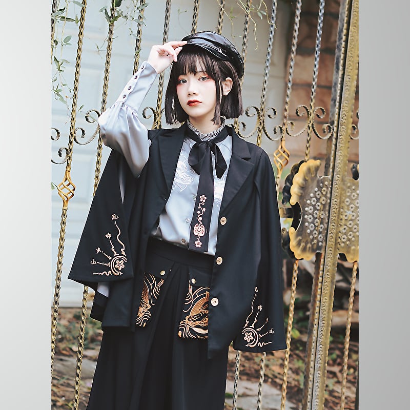 ゆったりしたとろみ感、スリーブとバックは古怪舎オリジナルの刺繍入り中華ロリータアウターです