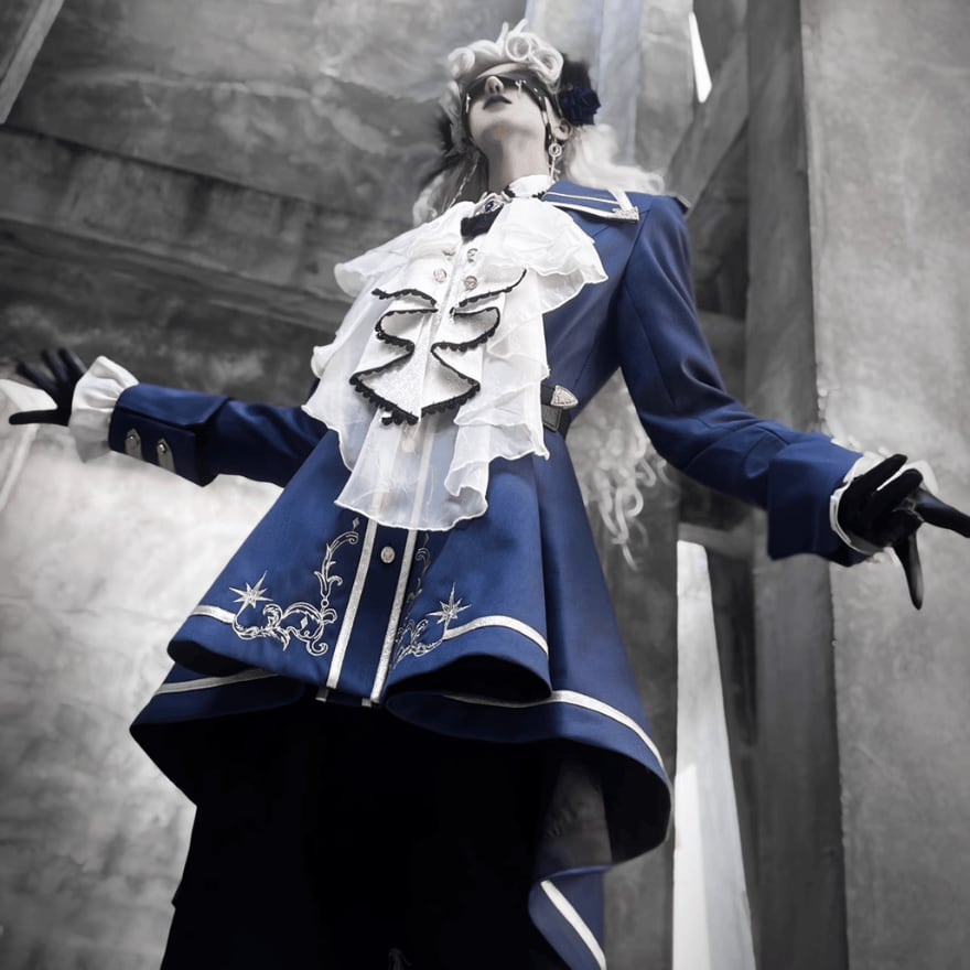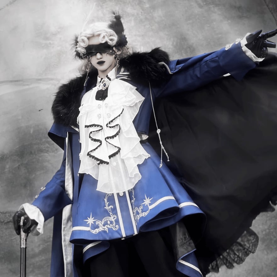 マント、ジャケット:ネイビー、シャツ:ホワイト