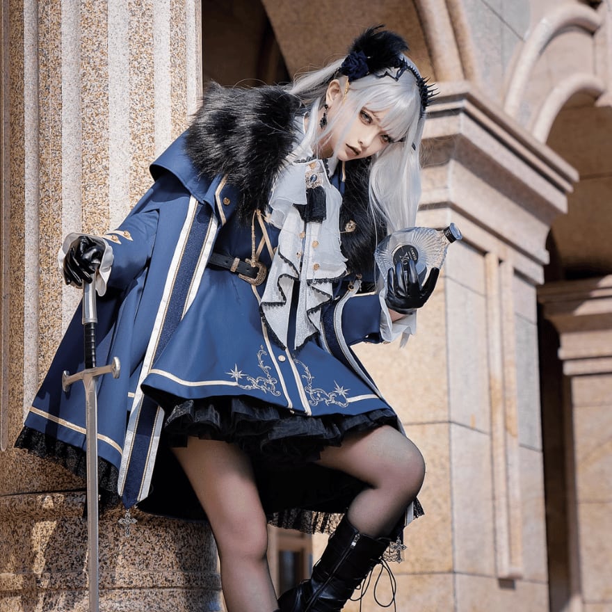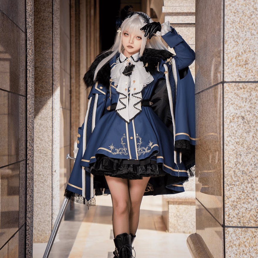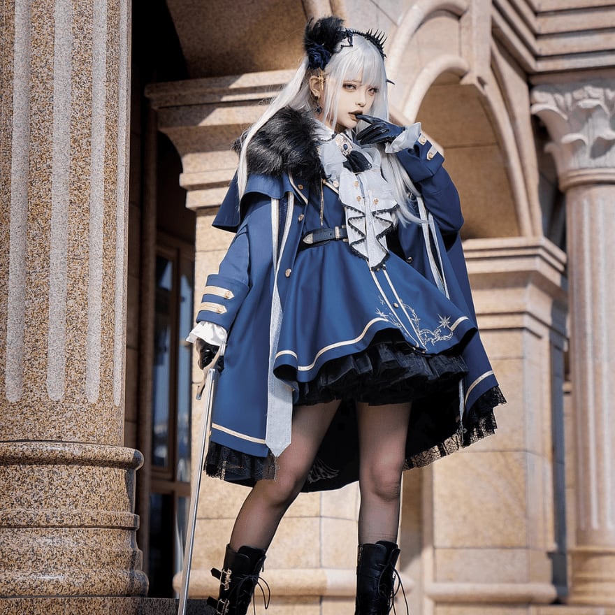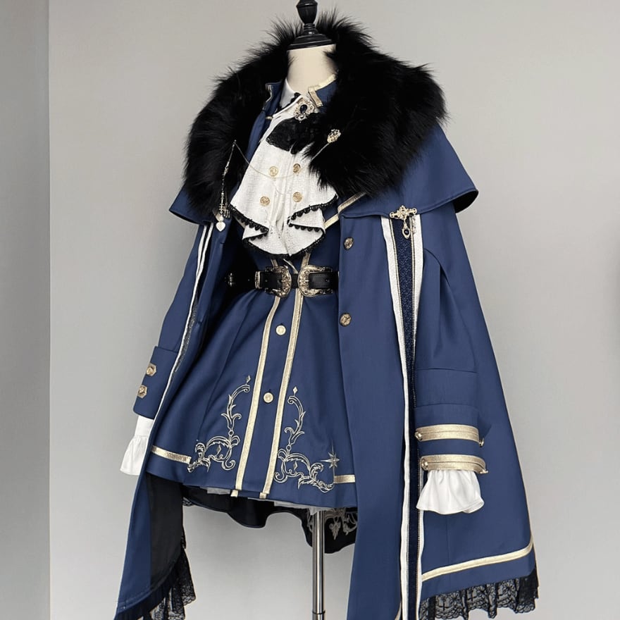 軍服ロリィタ フルセット ジャケット マント フェイクファー シャツ ファンタジー 制服 ロマンティック